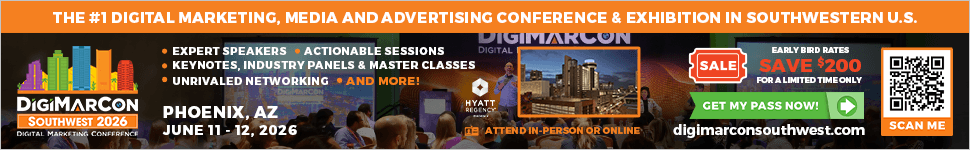 The 8th Annual DigiMarCon Southwest—the leading Digital Marketing, Media, and Advertising Conference & Exhibition in Southwest—returns June 11th to 12th, 2026, to the luxurious Hyatt Regency Phoenix Hotel in Phoenix, Arizona. Join industry leaders, innovators, and peers in-person or online for 2 action-packed days of cutting-edge strategies, emerging trends, and game-changing technologies in AdTech, MarTech, SaaS, and more.